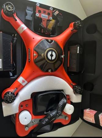 I'm selling a red Splashdrone 3+ drone. It's in impeccable condition and very lightly used. It has only flown three times. It includes a second smart battery charger and comes with four batteries for the drone (SD3+) and two batteries for the controller. It also includes an accessory for attaching fishing lines and a visor to properly view the controller screen. The camera is excellent, specifically the PL3 with a battery release.